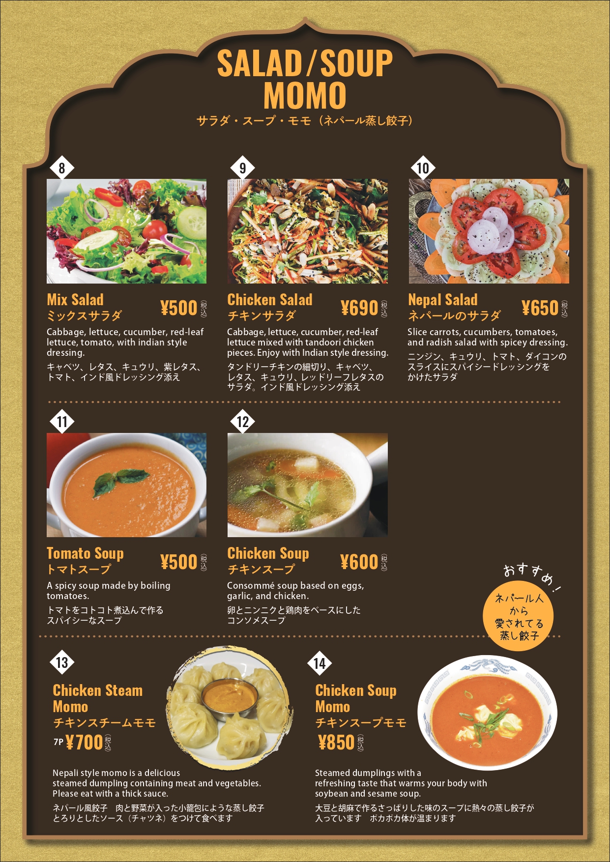 サラダ・スープ・モモ